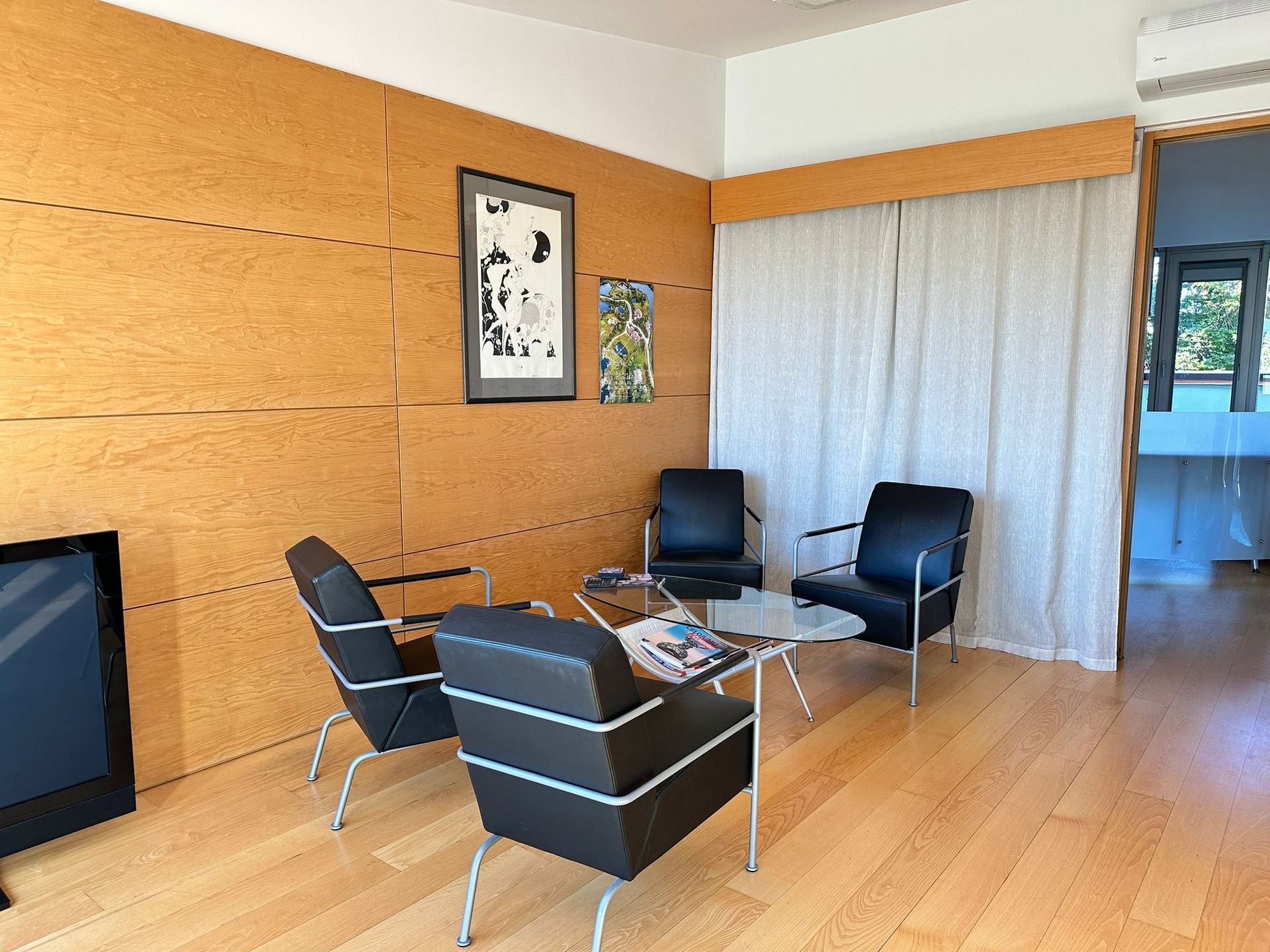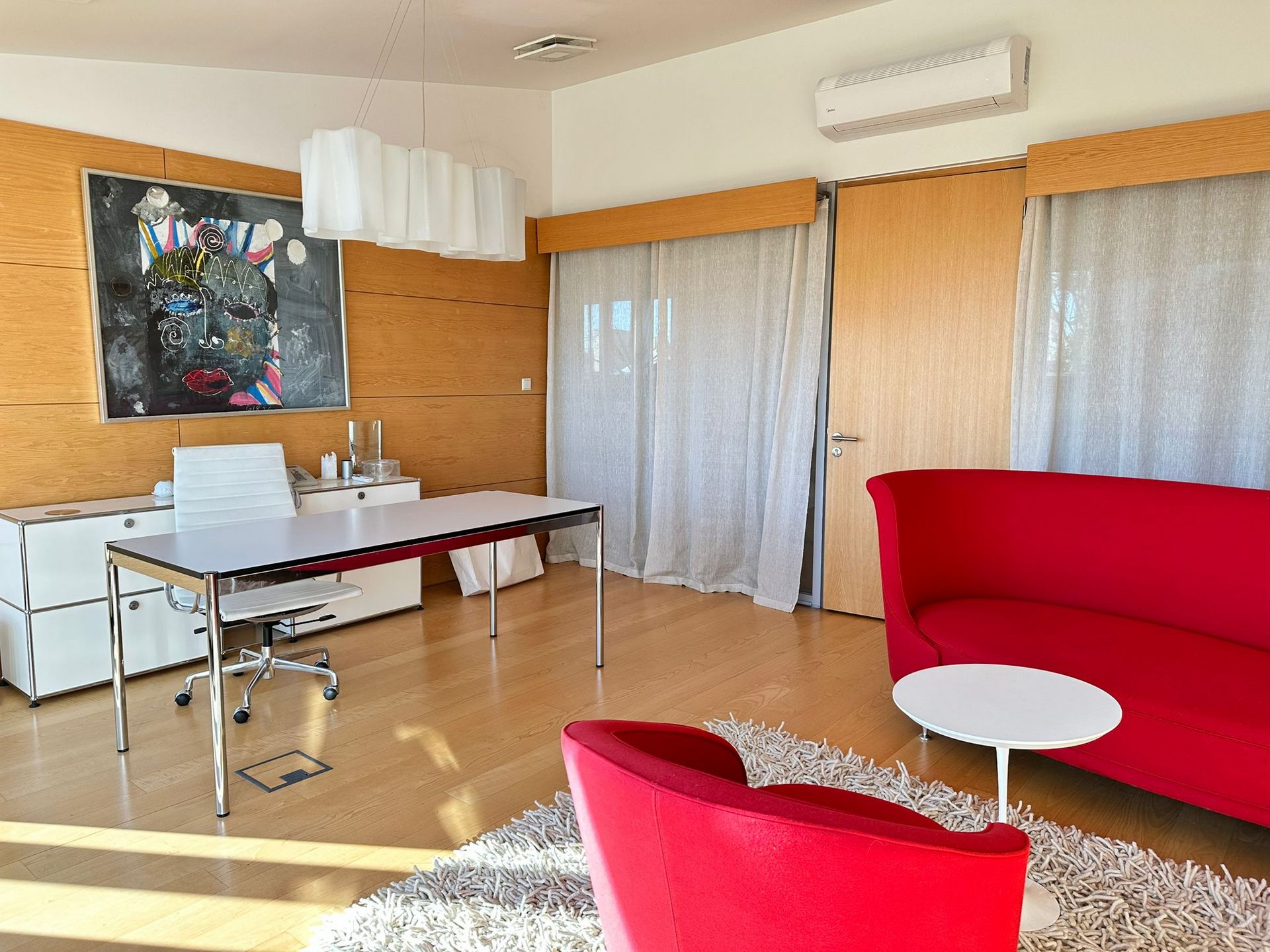 Atsevišķas tualetes, virtuves un viesu uzņemšanas telpas. Lifts. Gaisa kondicionēšana. Biroja vadītāja 1. stāvā.