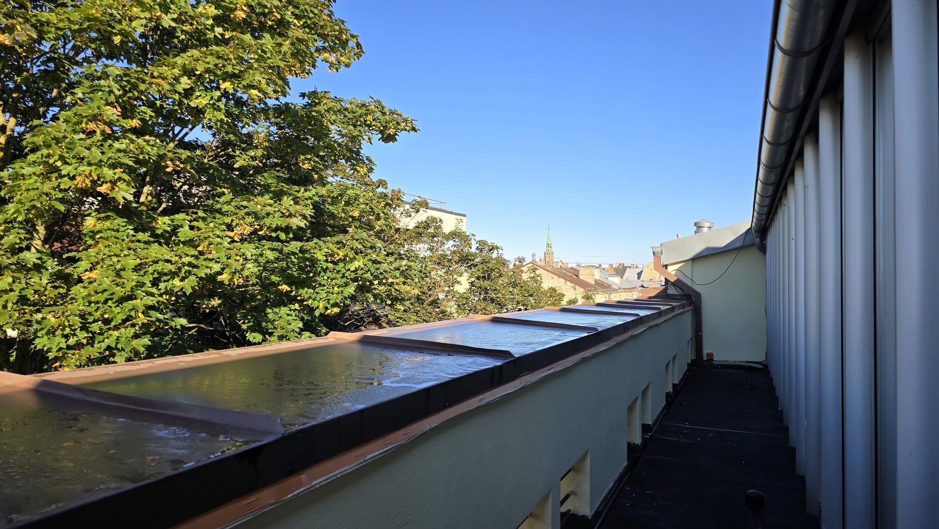 Ēka atrodas skaistā, zaļā pagalmā. Pieejamas četras terases – 6., 4., 3. un cokola stāvā.